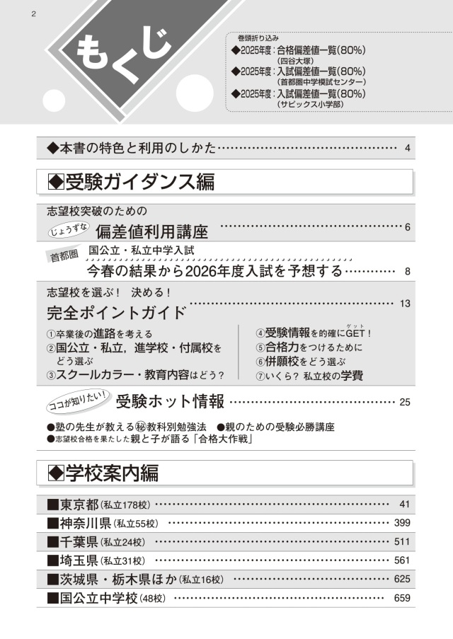志望校が決まっても、最後まで悩む併願校。声の教育社の受験案内には、中学受験のプロが偏差値はもちろん、電車の乗り継ぎまで考慮に入れて作成したリストが掲載されています。